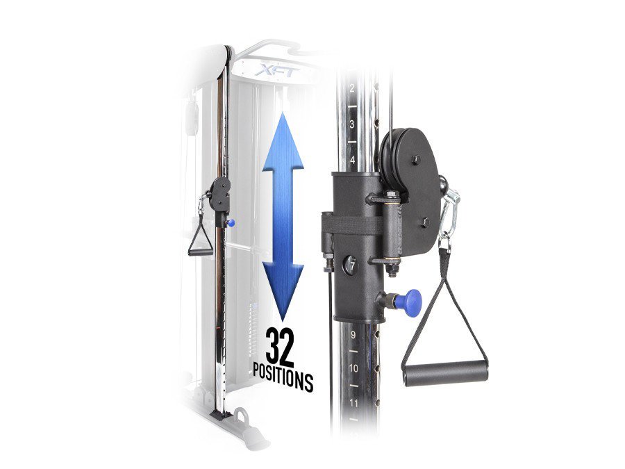 • Poulies rotatives doubles réglables : pour des mouvements polyvalents et dynamiques. • 32 positions de hauteur gravées au laser : réglages précis pour tous les niveaux de forme physique. • Plateau porte-accessoires intégré et crochets de rangement : rangement pratique pour tout votre équipement. • Barre de traction multi-prise : différentes options de prise pour l’entraînement du haut du corps. • Système de poulies facile à régler : ajustements rapides de la hauteur pour des entraînements efficaces.