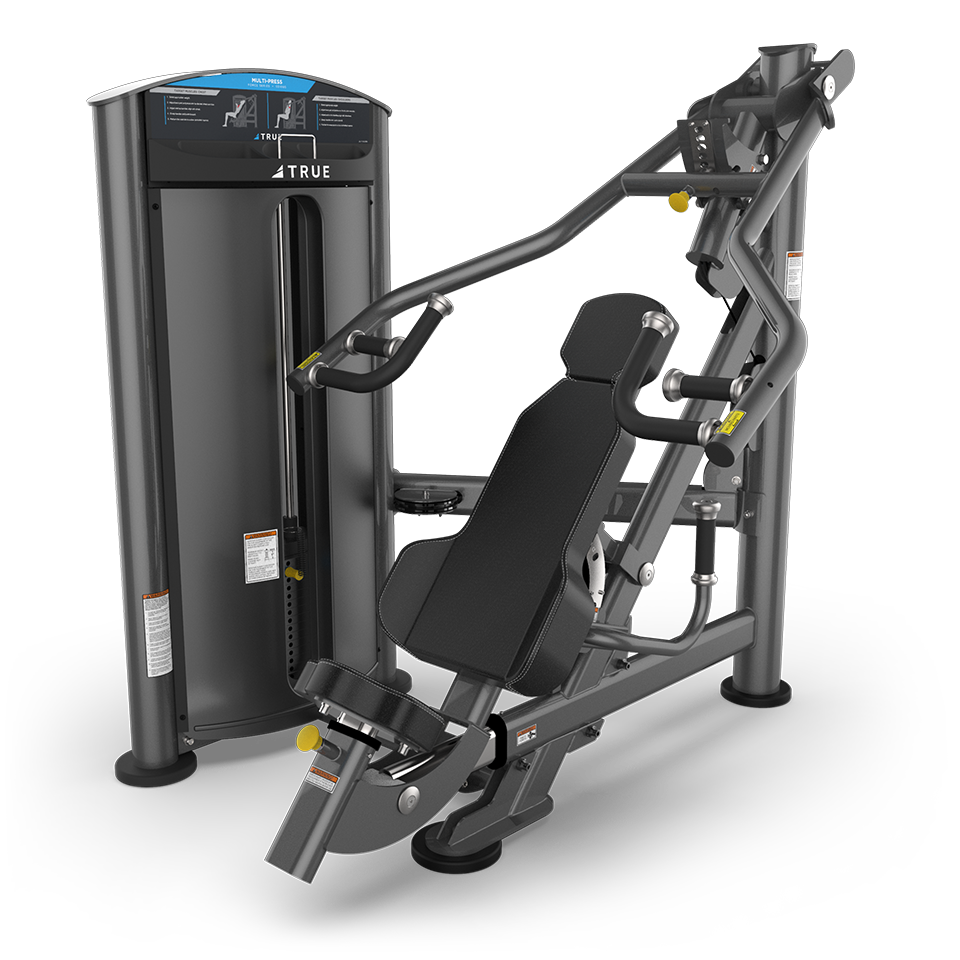 Réalisez une combinaison d’exercices personnalisables sur un seul appareil grâce au TRUE FORCE Multi-Press : développé couché, développé épaules et développé couché incliné. Le dossier à 3 positions, doté d’ailettes de soutien lombaire et d’un appui-tête intégré, utilise un vérin à gaz pour s’ajuster facilement aux exercices de développé couché, de développé couché incliné et de développé épaules. Le bras de poussée à 6 positions et le siège à 8 positions s’adaptent à un large éventail d’utilisateurs. Poignées multipositions pour varier les exercices. Boutons de réglage clairement étiquetés et identifiés par des codes couleur.